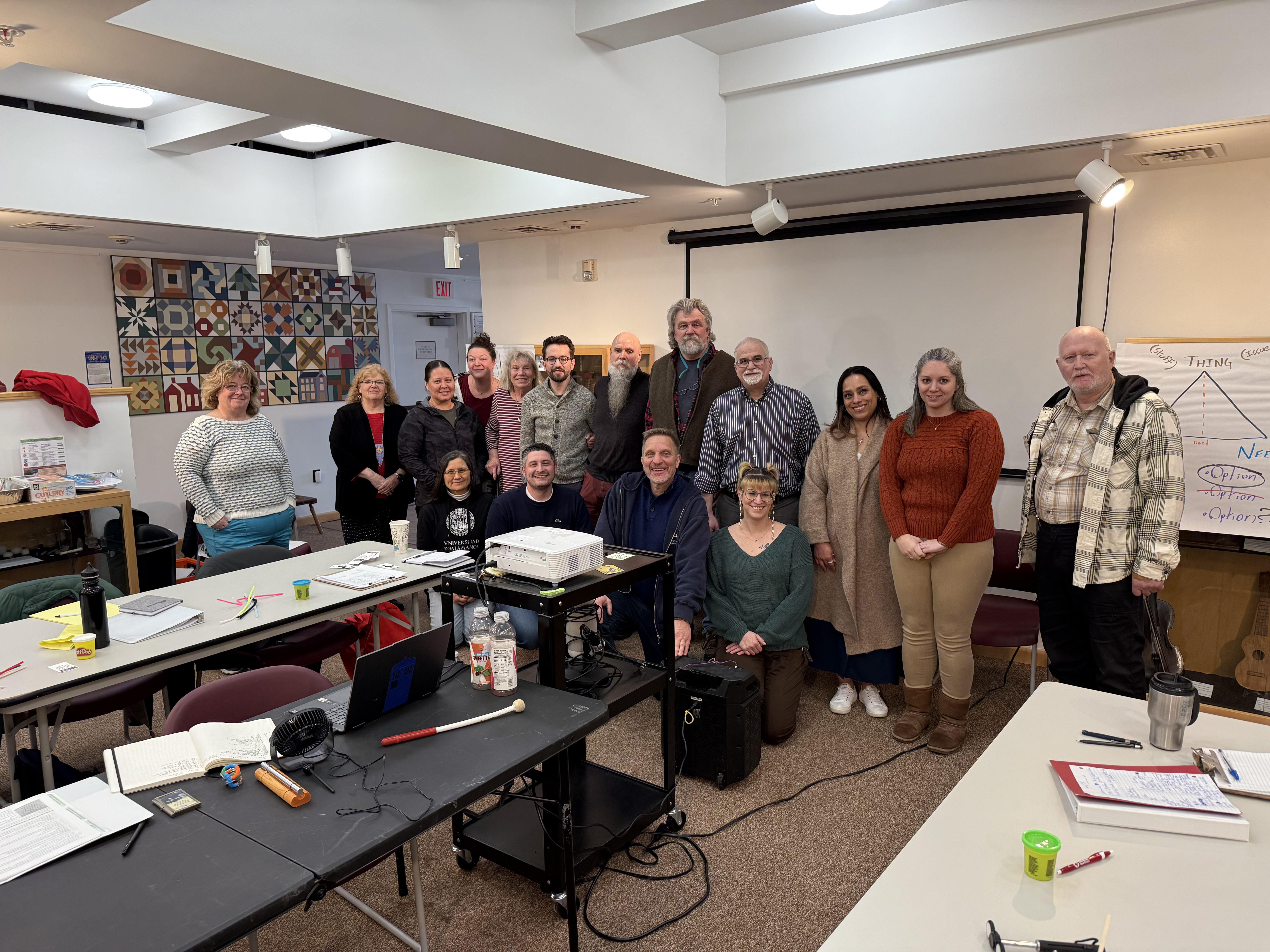 Both future Volunteer Mediators and paid professionals are learning, working, and discovering together in Canton, New York. This extraordinary group of people has been enduring winter weather and location changes to begin their Mediation Journey.